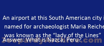 Below you will find the solution for: An airport at this South American city is named for archaeologist Maria Reiche who was known as the “lady of the Lines” Jeopardy .