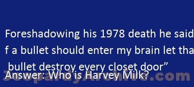 Below you will find the solution for: Foreshadowing his 1978 death he said “if a bullet should enter my brain let that bullet destroy every closet door” Jeopardy .