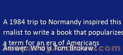 Below you will find the solution for: A 1984 trip to Normandy inspired this journalist to write a book that popularized a term for an era of Americans Jeopardy .