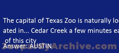 Below you will find the solution for: The capital of Texas Zoo is naturally located in... Cedar Creek a few minutes east of this city Jeopardy .