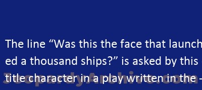 Below you will find the solution for: The line “Was this the face that launched a thousand ships?” is asked by this title character in a play written in the 16th century Jeopardy .