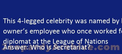 Since you already solved the question This 4-legged celebrity was named by his owner’s employee who once worked for a diplomat at the League of Nations which had the answer Who is Secretariat?, you can simply go back at the main post to check the other answers. You can do so by clicking the link here Jeopardy October 02 2025