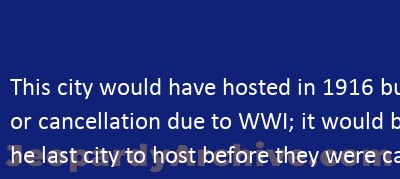 Below you will find the solution for: This city would have hosted in 1916 but for cancellation due to WWI; it would be the last city to host before they were canceled again Jeopardy .
